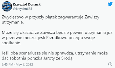 Zobaczymy jak Zawisza poradzi sobie w roli zdecydowanego faworyta grając przeciwko zdeterminowanemu rywalowi walczącemu o utrzymanie. Mecz już w piątek, więc warto szeroko nagłośnić temat wśród znajomych, żeby ludzie nie ocknęli się po fakcie.